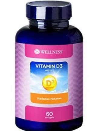 Wellness Vitamin D3 400 IU mengandung 1000 IU cholecalciferol yang setara dengan 25 mcg. Suplemen ini berguna untuk memenuhi kebutuhan tubuh akan vitamin D setiap harinya.