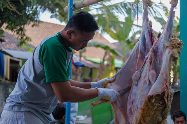 Pastikan tempat untuk pemotongan hewan kurban terjaga kebersihannya dan memiliki sanitasi yang baik. Jika diperlukan, semprotkan cairan disinfektan terlebih dahulu untuk membersihkan area pemotongan hewan sebelum kegiatan berkurban dimulai.
