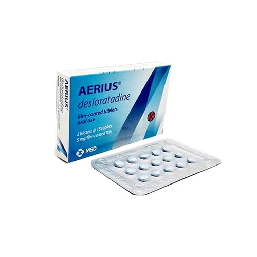 Aerius 5 Mg 30 Film Coated Tablet bermanfaat untuk meredakan gejala alergi, seperti kulit gatal, mata berair, atau biduran. Obat ini hanya boleh digunakan sesuai resep dokter.