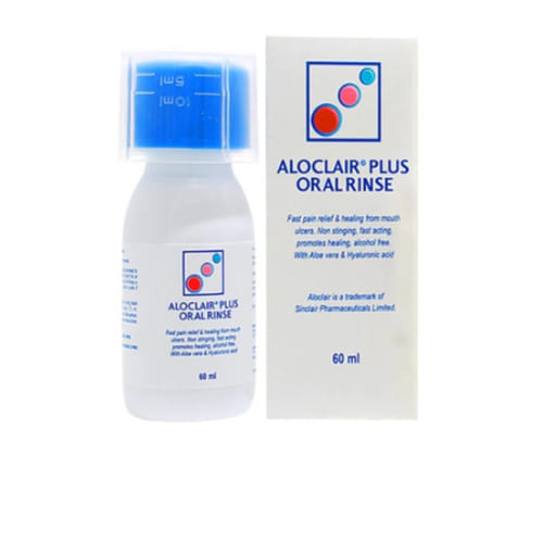 Aloclair Plus Mouthwash 60 Ml mengandung sodium hyaluronate dan lidah buaya yang bekerja dengan cara melapisi jaringan mulut, meningkatkan kelembapan jaringan mulut, dan meningkatkan kecepatan penyembuhan sariawan dan ulkus. Larutan ini bebas alkohol dan tidak menimbulkan rasa perih di mulut.