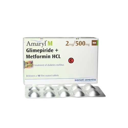 Amaryl M 2 mg/500 mg mengandung kombinasi glimepiride dan metformin. Obat ini bekerja merangsang pankreas untuk memproduksi insulin, meningkatkan kerja dan aktivitas hormon insulin, dan menurunkan penyerapan gula di dalam usus.