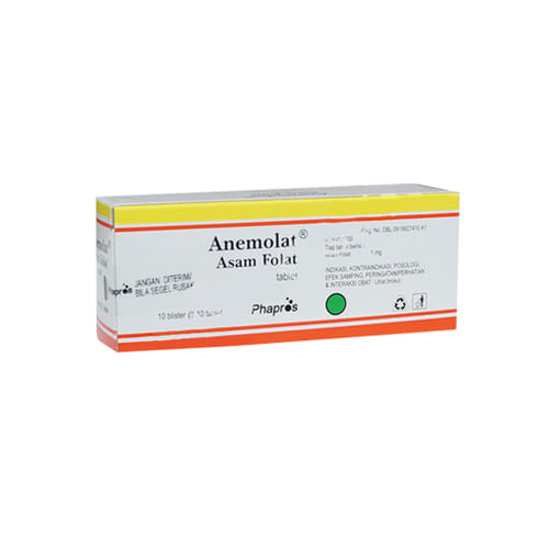 Anemolat 1 mg Tablet bermanfaat untuk mengatasi defisiensi asam folat, memenuhi kebutuhan asam folat pada ibu hamil, serta mengatasi anemia megaloblastik.
