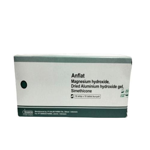 Anflat Chew 10 Tablet bermanfaat untuk menangani gejala kelebihan asam lambung, seperti mual, mulas, sakit perut, nyeri ulu hati, dan kembung. Obat ini juga digunakan untuk menangani gejala akibat gastritis, tukak lambung, atau ulkus duodenum.
