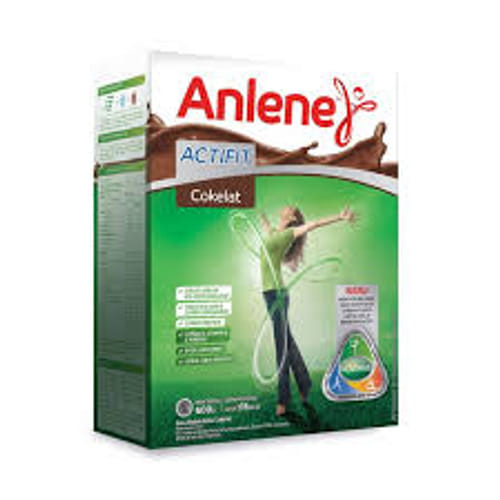 Campurkan 4 sendok makan susu bubuk cokelat Anlene Actifit dalam 200 ml air hangat atau dingin.