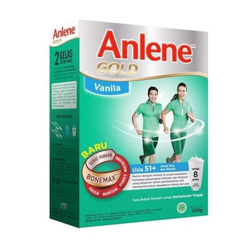 Anlene Gold Vanila 250 gr adalah susu bubuk yang dirancang khusus untuk mendukung kesehatan tulang pada orang dewasa. Berikut ini adalah manfaat, saran penyajian, dan hal-hal yang perlu diperhatikan dari konsumsi Anlene Gold Vanila 250 gr.