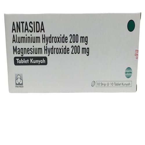 Tiap tablet kunyah mengandung alumunium hydroxide 200 mg dan magnesium hydroxide 200 mg.