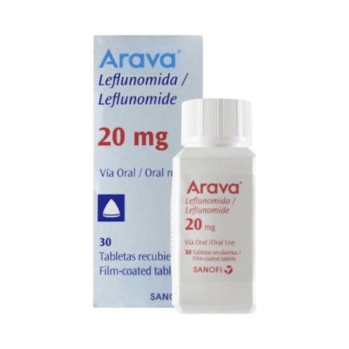 Arava 20mg Tablet mengandung Leflunomide yang membantu mengurangi kerusakan sendi, nyeri, dan pembengkakan, serta meningkatkan mobilitas dengan cara melemahkan sistem kekebalan tubuh dan mengurangi inflamasi.