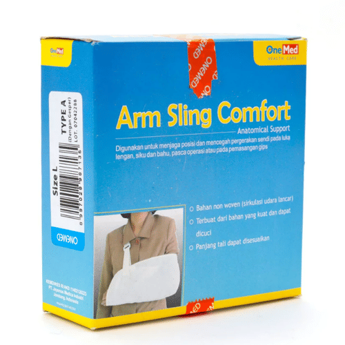 Arm Sling Comfort One Med S merupakan alat kesehatan yang dapat digunakan untuk menyangga lengan dan tangan
