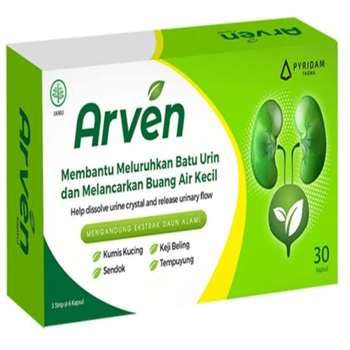 Arven 30 Kapsul adalah suplemen untuk membantu meluruhkan batu urin di ginjal dan saluran kemih, serta membantu melancarkan buang air kecil.