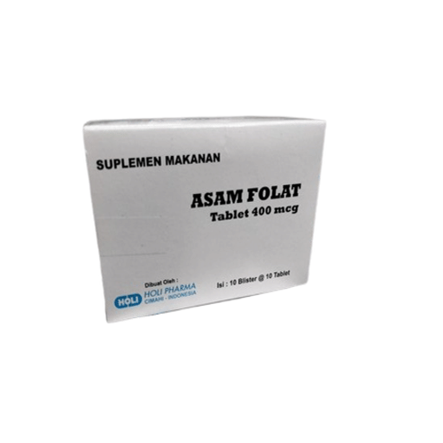 Asam Folat 400 mcg 10 Tablet Holi mengandung asam folat yang berguna untuk pembentukan sel-sel baru, termasuk sel darah merah. Selain itu, asam folat juga bermanfaat untuk mencegah terjadinya cacat tabung saraf (neural tube defect) pada janin.