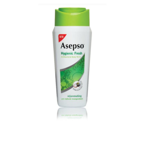 Asepso Body Wash Hygienic Fresh mengandung tyhmol sebagai antibakteri dan ekstrak alami kulit manggis untuk membuat kulit bersih dan segar setelah mandi.