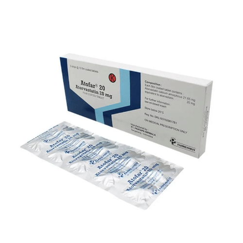 Atofar 20 mg bermanfaat untuk menurunkan kolesterol jahat (LDL) dan trigliserida, serta meningkatkan kadar kolesterol baik (HDL) di dalam darah.