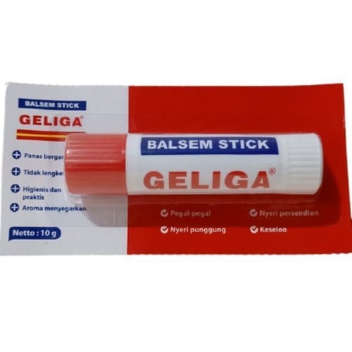 Balsem Stick Geliga 10 gr bermanfaat untuk membantu meredakan pegal, nyeri otot, nyeri sendi, keseleo, terkilir, sakit kepala dan sakit otot leher