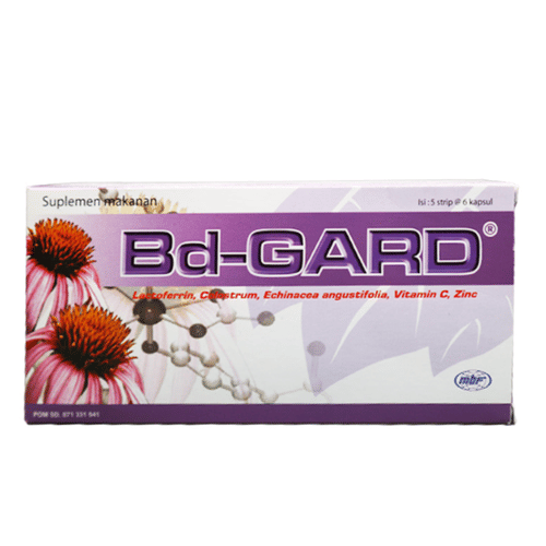 BD Gard 6 Kapsul yang mengandung Lactoferrin, Colostrum, Echinacea Angustifolia, Zinc dan Vitamin C digunakan untuk membantu memelihara daya tahan tubuh serta dapat digunakan sebagai terapi penunjang untuk kanker