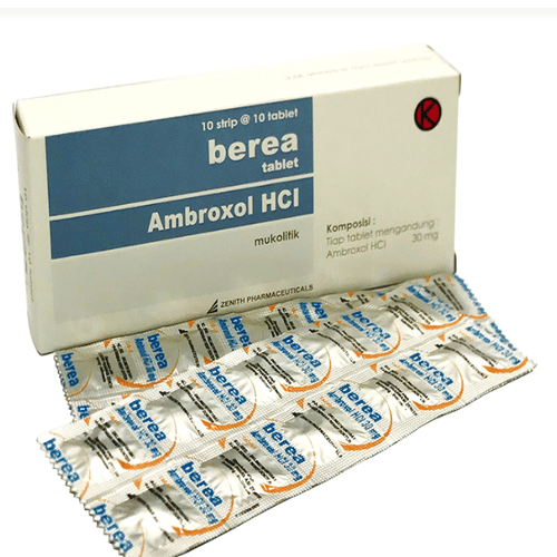 Ambroxol yang tekandung di dalam Berea 30 Mg 10 Tablet bekerja dengan cara membantu mengencerkan dahak agar lebih mudah dikeluarkan dari tenggorokan saat batuk.