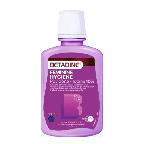 Untuk menjaga kebersihan organ intim, gunakan Betadine Solution Hygiene 60 Ml sebanyak 8 ml, 2 kali seminggu.