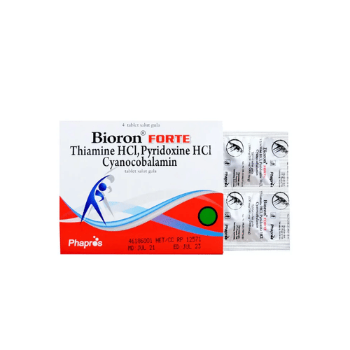 Kombinasi vitamin B1, vitamin B6, dan vitamin B12 dalam Bioron Forte 4 Tablet berperan dalam mendukung pembentukan energi, pembentukan sel darah merah, dan kinerja sel saraf.