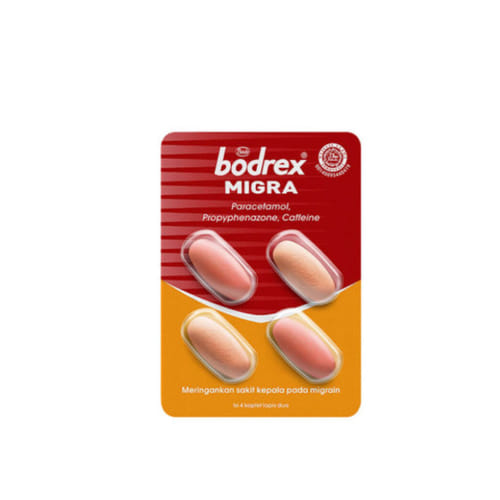 Bodrex Migra 4 Kaplet bermanfaat untuk meredakan mi grain atau sakit kepala sebelah.