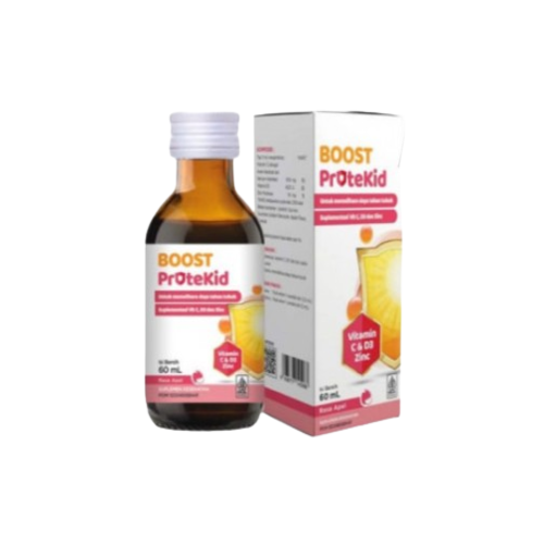 Boost Protekid Sirup mengandung vitamin C, vitamin D3 dan Zinc digunakan untuk membantu memelihara daya tahan tubuh serta membantu mempercepat proses penyembuhan sakit