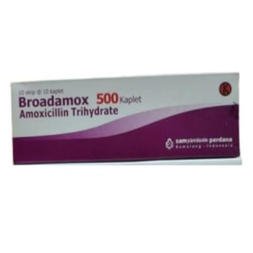 Broadamox 500 mg memiliki kandungan bahan aktif Amoxicillin Trihydrate. Amoxicillin merupakan obat antibiotik golongan penisilin yang tersedia dalam bentuk tablet maupun sirup. Obat ini menghambat pertumbuhan bakteri yang menyebabkan infeksi dalam tubuh dengan cara menghambat pembentukan dinding sel bakteri.