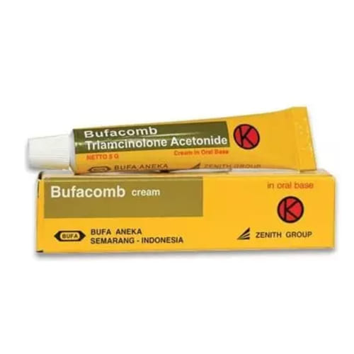 Bufacomb Krim mengandung triamcinolone acetonide yang bekerja dengan cara mencegah pelepasan senyawa yang dapat menyebabkan peradangan.