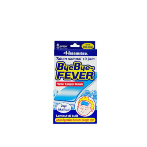 - Bye Bye Fever Plester Kompres Demam untuk Anak 5 Lembar hanya untuk pemakaian luar. Jangan digunakan pada mata, sekitar mata, membran mukosa, atau kulit yang mengalami eksim, ruam, atau luka.