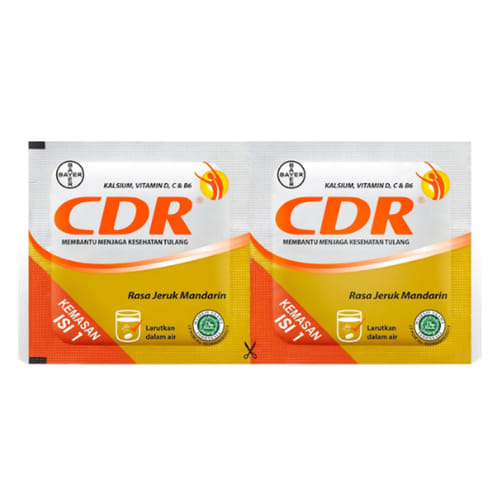 - CDR Effervescent Strip 2 Tablet mengandung pemanis buatan, yaitu aspartam dan acesulfame. Jangan mengonsumsi CDR jika Anda menderita fenilketonuria.