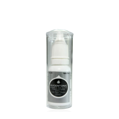 Cendo Augentonic Tetes Mata mengandung phenylephrine dan zinc sulfate. Phenylephrine bekerja sebagai dekongestan yang bertugas mengecilkan pembuluh darah yang melebar di mata. Zinc sulfate berfungsi sebagai zat untuk membersihkan protein dan lendir di permukaan luar mata.