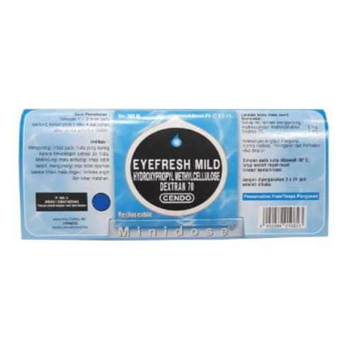 Cendo Eyefresh Plus Minidose 0,6 Ml 5 Ampul mengandung hydroxypropyl methylcellulose yang bisa bekerja sebagai air mata buatan, sehingga bisa digunakan untu mengurangi keluhan akibat mata kering.