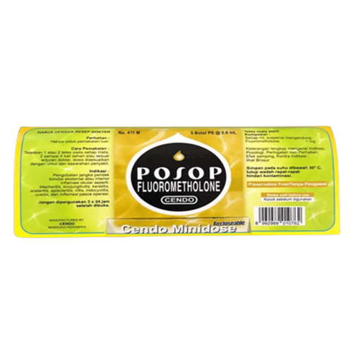 Cendo Posop merupakan obat tetes mata yang mengandung fluorometholone. Obat ini bekerja meredakan pembengkakan, kemerahan, dan gatal pada mata.