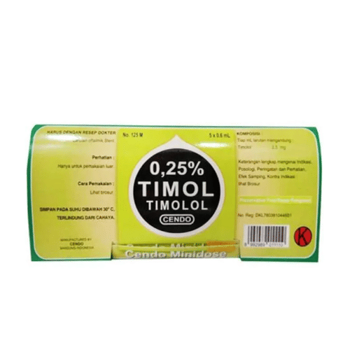 Cendo Timol 0,25% Tetes Mata Minidose bermanfaat untuk menobati penyakit glaukoma, yaitu gangguan penglihatan akibat tingginya tekanan di dalam bola mata.