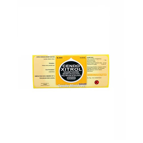 Cendo Xitrol Minidose 0,6 Ml mengandung dexamethasone sodium phosphate, neomycin sulfate, dan polymyxin B sulfate. Polymixin B dan neomycin merupakan antibiotik yang dapat membunuh serta menghambat pertumbuhan bakteri, sedangkan dexamethasone adalah kortikosteroid yang dapat meredakan peradangan.
