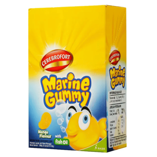 Cerebrofort Marine Gummy Mango Sachet 20 g mengandung omega 3, ditambah EPA serta DHA yang berguna untuk membantu memelihara kesehatan jantung.