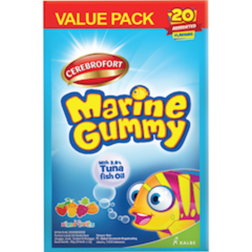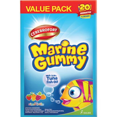 Cerebrofort Marine Gummy Mixed Fruit Sachet 20 g mengandung omega 3, ditambah EPA serta DHA yang berguna untuk membantu memelihara kesehatan jantung.