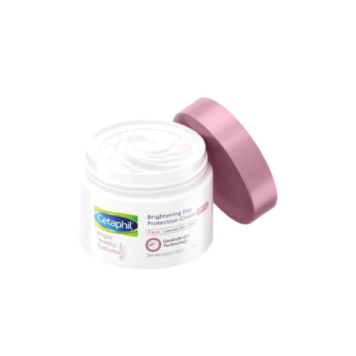 Cetaphil Brightening Day Protection Cream mengandung tabir surya, glycerin, niacinamide, dan sea daffodil yang membantu melindungi, melembapkan, mengurangi bintik hitam, dan mencerahkan kulit. Produk ini hypoallergenic, non-comedogenic, dan tidak mengandung tambahan pewangi.