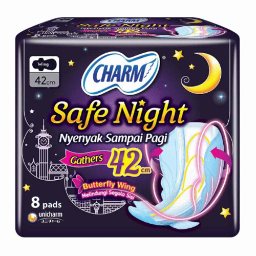 Charm Body Fit Night Wing 42cm 8 Pad akan menjadi pilihan yang tepat untuk memberikan kenyamanan dan perlindungan ekstra saat malam hari. Dengan fitur sayap dan daya serap tinggi, Anda bisa tidur dengan tenang tanpa khawatir kebocoran