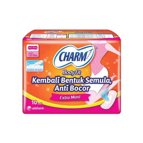 Charm Bodyfit Extra Maxi 10 Pads bermanfaat untuk menyerap darah menstruasi, saat jumlahnya normal maupun banyak