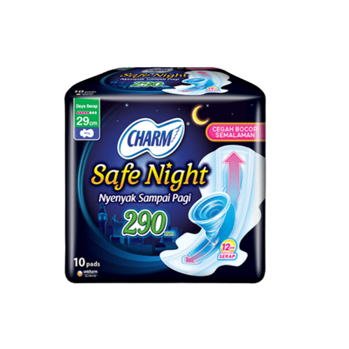 Charm Safe Night Wing 10 Pads bermanfaat untuk menyerap darah menstruasi, saat jumlahnya normal maupun banyak