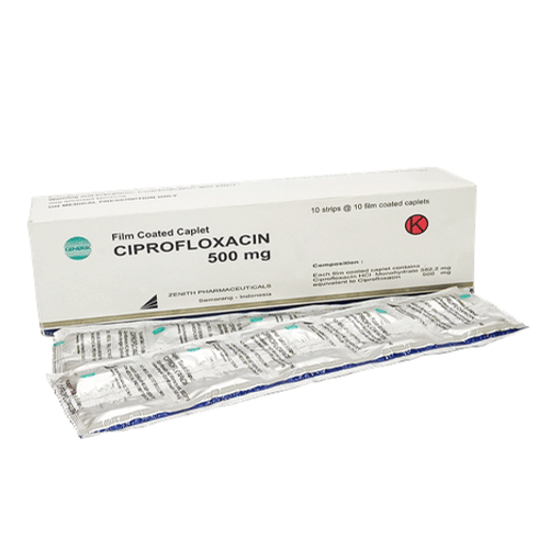 Ciprofloxacin 500 mg 10 Tablet mengandung ciprofloxacin yang bekerja menghancurkan dinding sel bakteri penyebab infeksi sehingga bakteri tersebut mati.