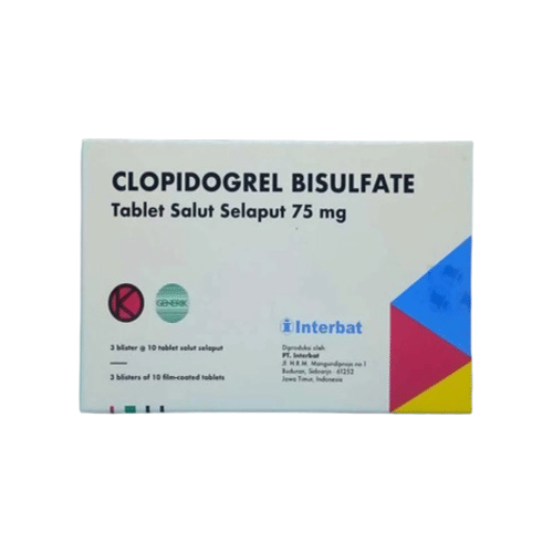 Clopidogrel 75 mg 10 Tablet mengandung clopidogrel yaitu, obat golongan antiplatelet yang bekerja dengan cara mencegah keping darah saling menempel dan membentuk gumpalan darah yang berisiko menyumbat pembuluh darah. Cara kerja ini akan menurunkan risiko terjadinya serangan jantung atau stroke.