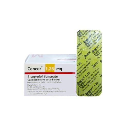 Concor 1,25 mg Tablet bermanfaat untuk mengobati hipertensi atau tekanan darah tinggi, angina pektoris, aritmia, dan gagal jantung.