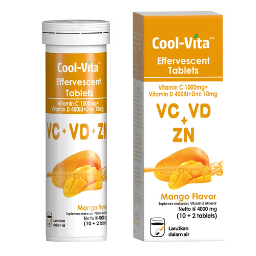 Kombinasi dari vitamin C dan zinc dalam Cool-Vita Mango Effervescent 10 Tablet akan membantu meningkatkan daya tahan tubuh, serta baik untuk menjaga kesehatan kulit, tulang, dan gigi.