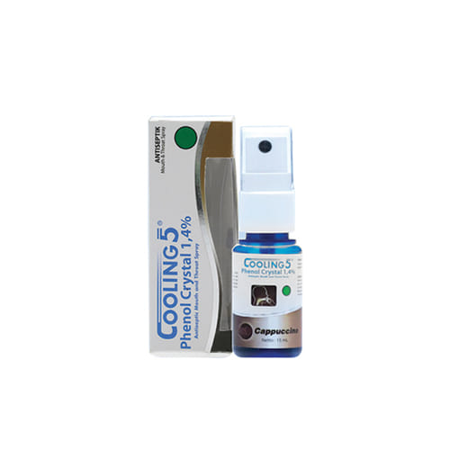 - Konsultasikan terlebih dahulu perihal penggunaan Cooling 5 Antiseptic Mouth and Throat Spray Cappuccino dengan dokter jika Anda sedang hamil atau menyusui.