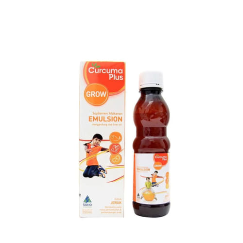 - Curcuma Plus Grow Emulsion mengandung temulawak dan minyak ikan. Konsultasikan ke dokter perihal penggunaan Curcuma Plus Grow Emulsion jika anak Anda pernah atau sedang menderita penyakit hati, gangguan saluran empedu, alergi ikan, atau diabetes.