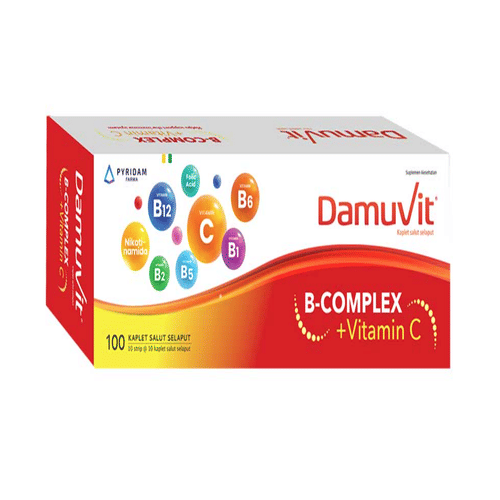 Vitamin B1 50 mg, vitamin B2 25 mg, vitamin B6 10 mg, vitamin B12 5 mcg, nicotinamide 100 mg, calcium pantothenat 25 mg, vitamin C 500 mg, asam folat 0,5 mg.