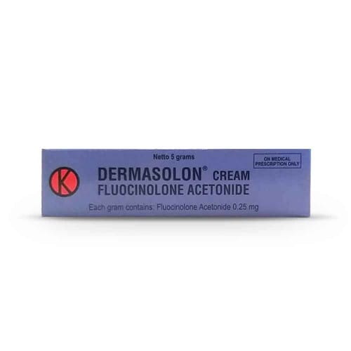 Dermasolon Krim mengandung fluocinolone yang bekerja dengan cara mengurangi produksi prostaglandin dan leukotrien di dalam tubuh yang memicu peradangan.