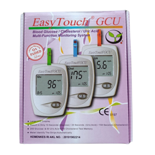 Easy Touch GCU Metered digunakan untuk pemeriksaan glukosa, kolesterol dan asam urat di dalam darah