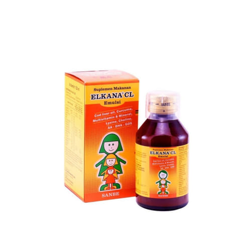 - Elkana CL Emulsi mengandung lisin. Konsultasikan dengan dokter perihal penggunaan suplemen ini jika anak menderita intoleransi terhadap lisin.