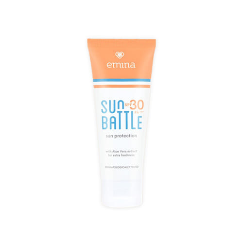 Emina Sun Battle SPF 30 PA+++ 60 ml merupakan tabir surya dengan tekstur ringan dan mudah menyerap ke kulit. Emina Sun Battle SPF 30 PA+++ 60 ml juga diperkaya oleh grape leaf extract yang dikenal sebagai bahan antipolusi dan antioksidan yang dapat membantu melawan tanda-tanda penuaan dini.