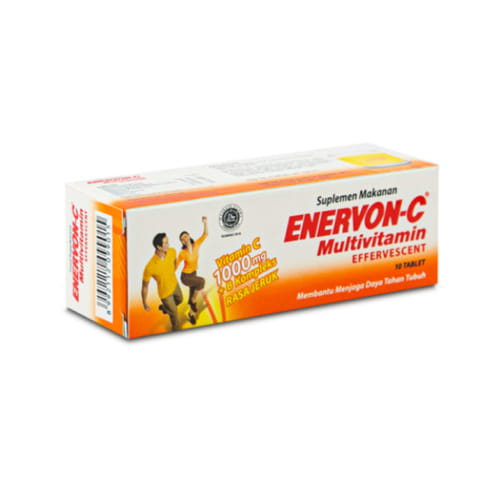 Larutkan Enervon-C effervescent dalam segelas air hingga benar-benar larut, kemudian minum larutan tersebut